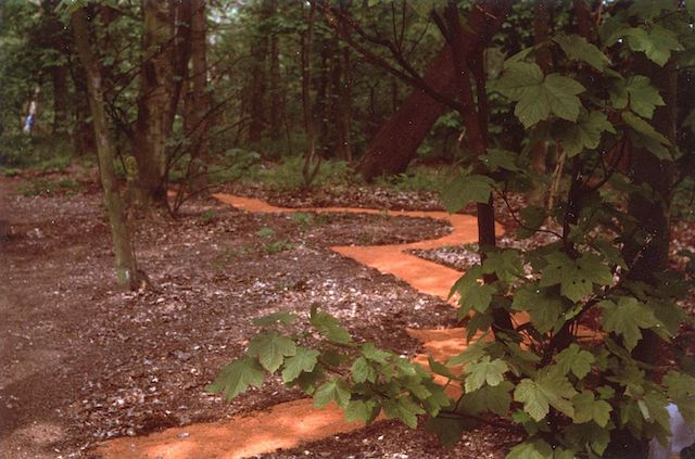 Positioning: The art piece has been placed centrally on the trails’ crossing, causing the trails to run through it.